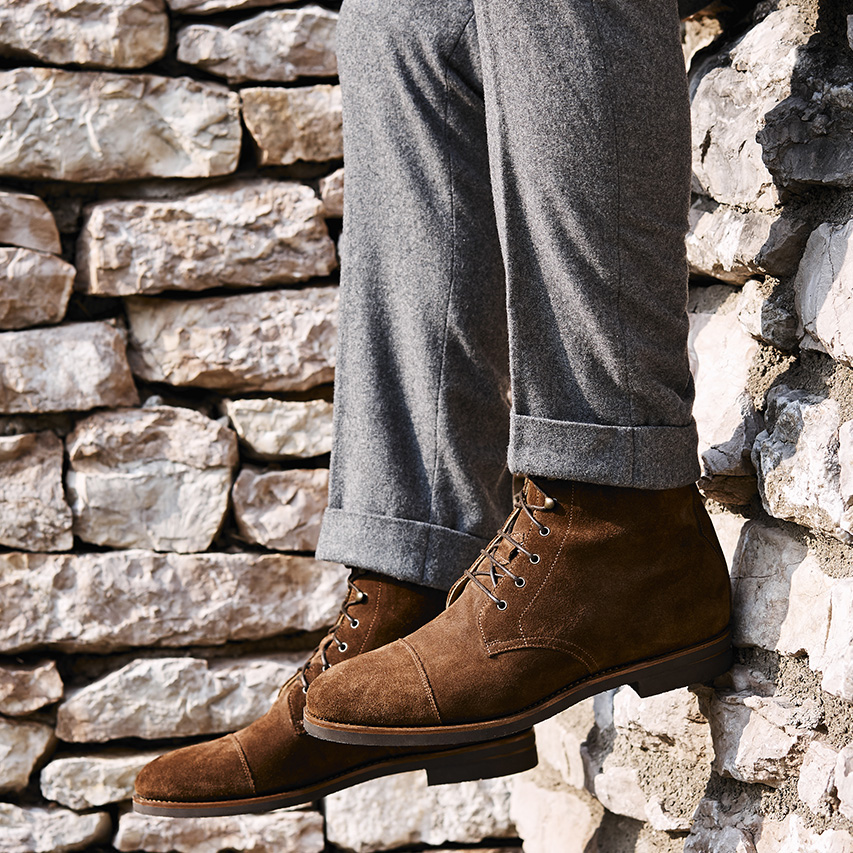 Our 'Paolo Snuff' laced boots are handcrafted by skilled artisans on an Italian last in our manufactory in Italy and stitched in the blake rapid method. The boots are made from high-quality Italian brown suede leather and due to the high-quality Vibram sole they are resistant to every kind of weather.