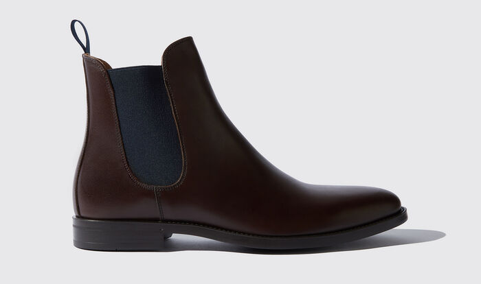 Our 'Giacomo Testa Di Moro' Chelsea Boots are handcrafted on our timeless Italian last by our experienced artisans in Montegranaro, Italy. We have crafted this classic style for winter with a full rubber sole in the Blake method, which makes these Chelsea Boots more durable for rainy days. Our 'Giacomo Testa Di Moro' are crafted from Italian suede leather in the testa di moro colour and have a significant contrast stretch in blue.
