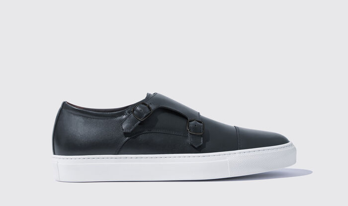 The cool monks with cap toe are made out of blue calfskin and are closed with two buckles. Moreover, the shoes feature a removable insole for additional comfort and have a white platform sole that is trimmed with a seam and connects the sole with the upper.