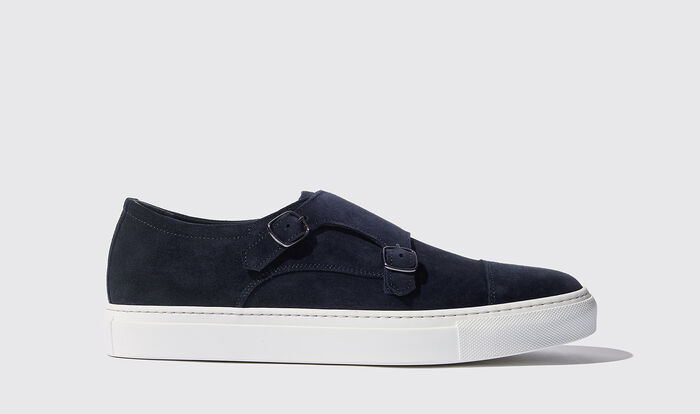 Handmade in Italy by our expert craftsmen, these ‘Fabio’ sneakers pair a monkstrap upper with a platform sole, creating an appealing fusion of class and modernity. Comfortable and versatile, the 'Fabio Blu Scamosciato' are made from soft blue suede leather.