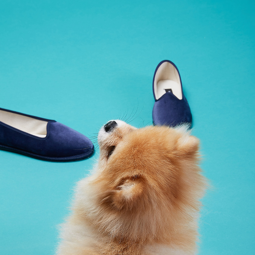 Originally, 'friulane' or 'papusse' were celebratory shoes made for humble folk in the Italian region of Friuli. They were hand-sewn by housewives from discarded materials, such as scraps of fabric and bicycle tyres. From Friuli, these shoes then found their way to Venice, where they were first worn by gondoliers and then by aristocrats. Popular thanks to the comfort and refinement they provide, today friulane shoes are worn as slippers at home and outdoors in spring and summer. Scarosso's friulane shoes—'Valentino' for him and 'Valentina' for her—are made by hand in Friuli, limiting the number of pairs produced and making each shoe unique. With its velvety surface, the shoe box provides an exquisite touch.